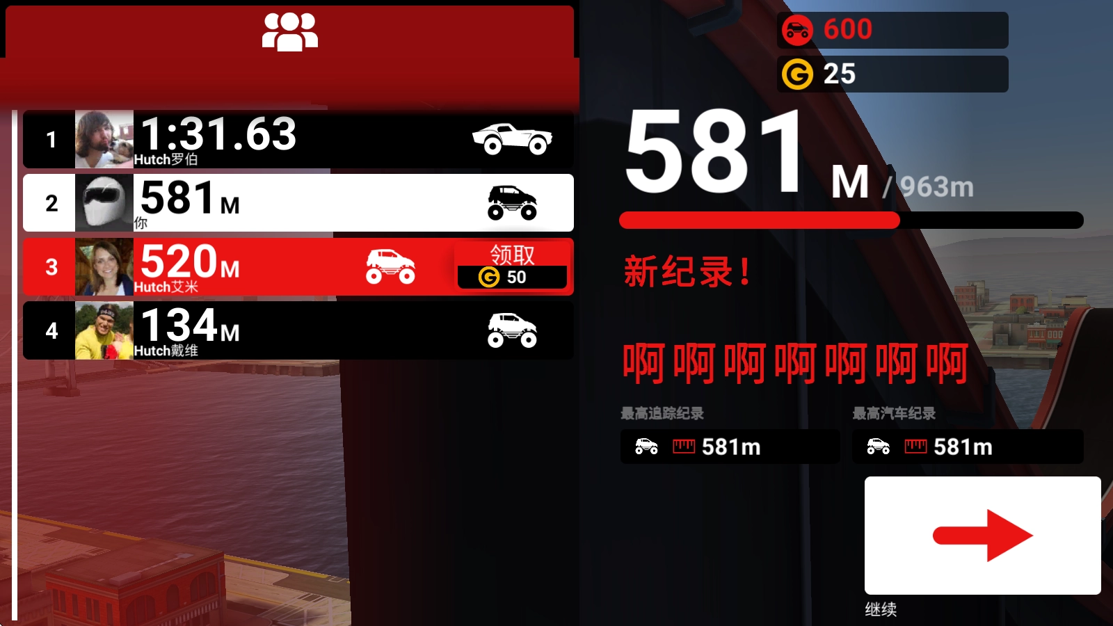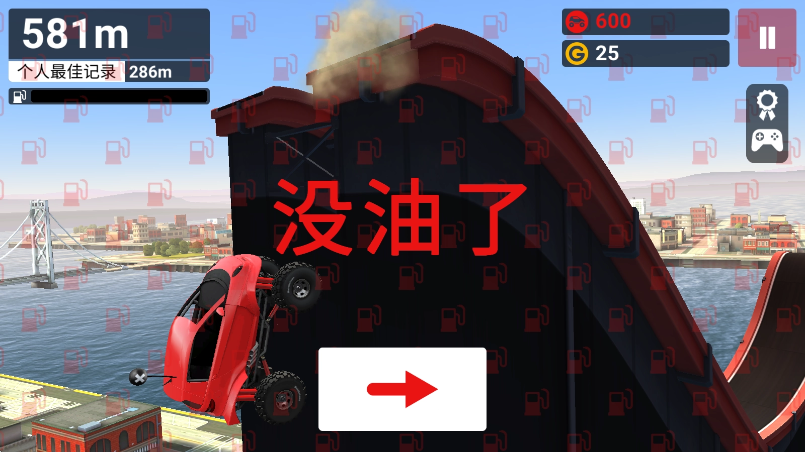 5、当汽车爆炸,或者汽车没油了之后就会结束挑战。