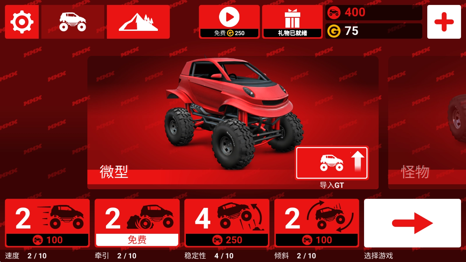 7、回到主界面,我们还可以去强化自己的汽车。