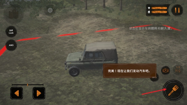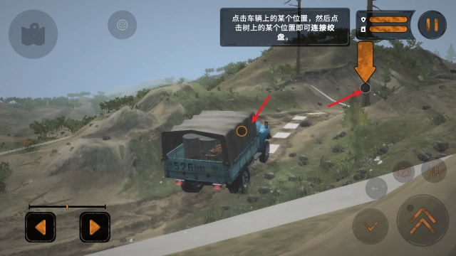 4、点击车辆上的任意位置,接着点击树上的任意位置,就能完成绞盘的连接操作。