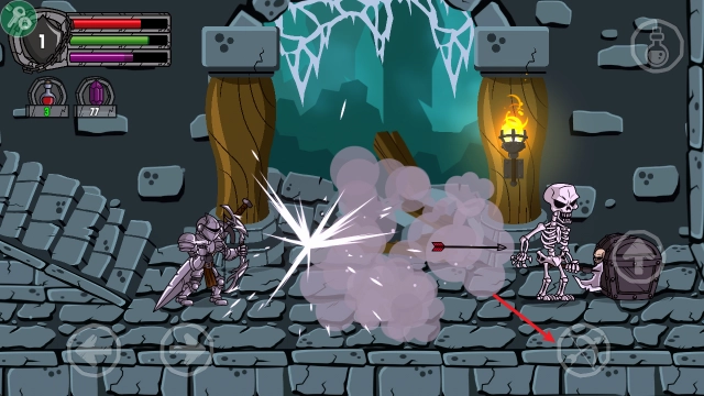 2、点击右侧的弓箭可以射击进行辅助攻击。