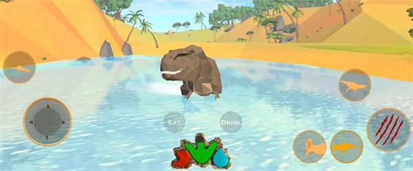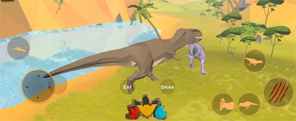 5、攻击其他恐龙并将其吞食,吃掉对方能恢复你的生命值与能量,而饥渴值可通过喝水来恢复。