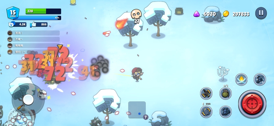 选好武器后便正式进入游戏环节,左侧区域用于操控角色移动,右侧则分布着射击、投掷手雷、更换弹药、切换武器以及疾跑的功能按键。