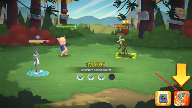 3、除了常规的攻击方式外,在界面的右下角还设有角色的特殊攻击功能。