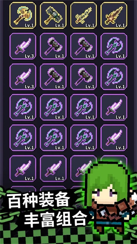 在最终的黎明时分,你需要无情地收割源源不断的各类魔物,领悟不同的魔法秘籍,获取更强大的技能,收集战场上随机生成的各式武器与遗器道具。