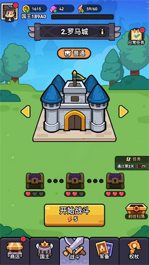 在正式开始前,你可以选择不同的国王进行闯关,每个国王的配备都有所不同。