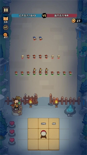 4、进入战场后会自动开启战斗模式,你的士兵与国王会自动对敌人发起攻击,待所有敌人被消灭殆尽,即可进入下一波战斗。