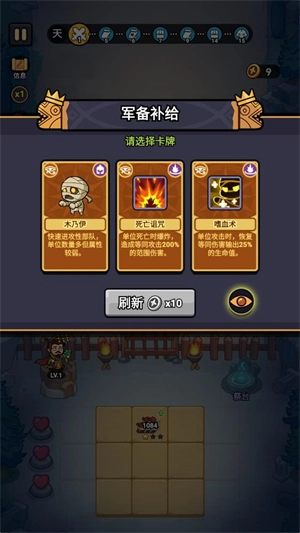 3、进入关卡后,玩家需选择初始兵种进行上阵操作,只需将对应卡牌放置到方块内即可完成上阵。