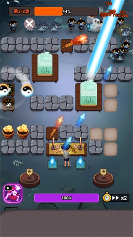 1、这是一款休闲又有趣的塔防游戏,把传统的僵尸、鬼魂、道士这些元素融入塔防玩法中,能让你体验一场别具一格的塔防对决。