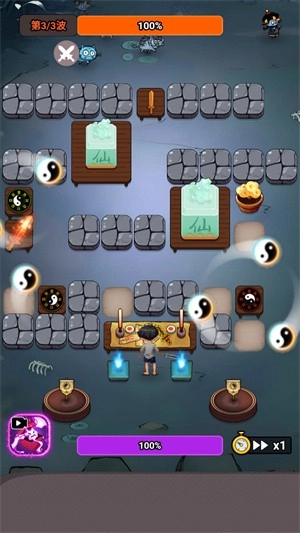 1、的下面有多个法宝,每个法宝会占用不同的格子,选择之前需要好好的思考,争取放在合适位置。