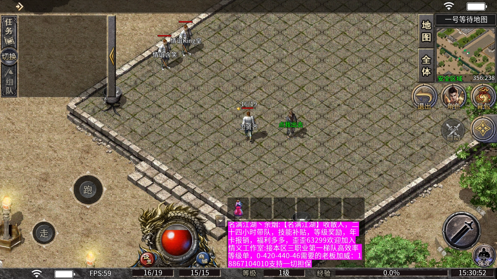 这是安全区域,在此区域外的地图禁止挂机;区域内怪物不会掉落物品,获得的经验仅为普通怪物的一半。