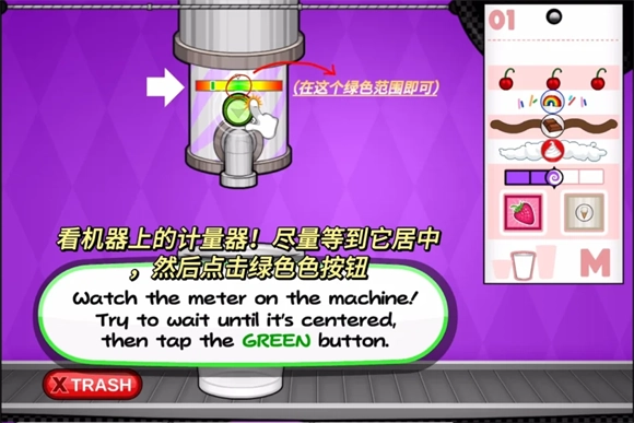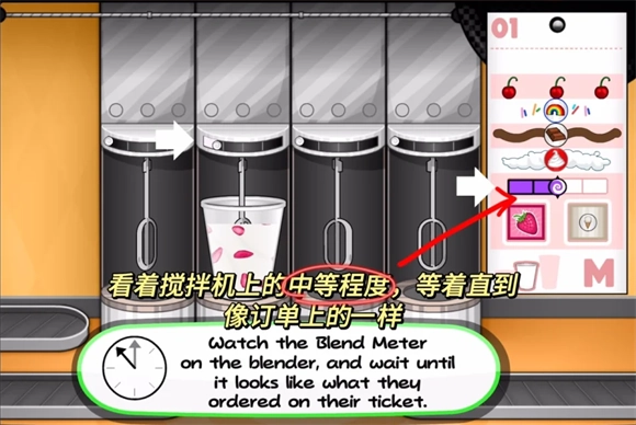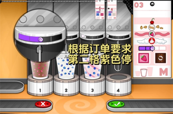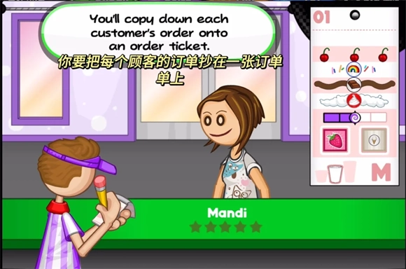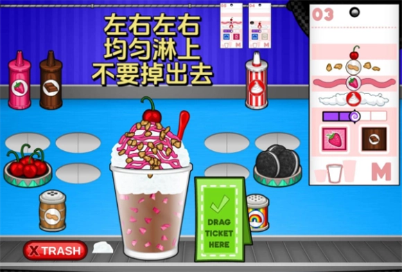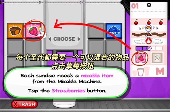 3、每一个圣代都需要一个可用于混合的物品,请根据订单上的要求点击相应按钮