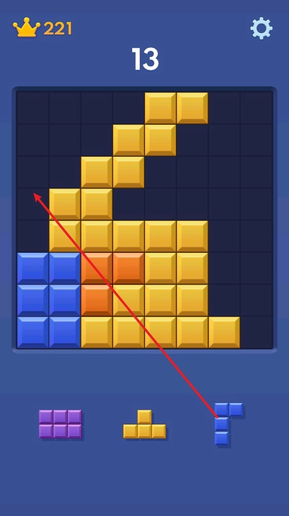 1、下方会给出三种随机方块,把它们放到合适的位置就可以了。
