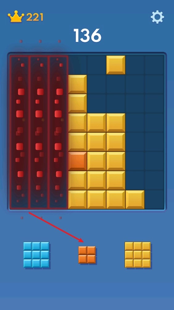 2、当一整条或一整行的方块都凑齐时,就会自动消除,同时获得相应的积分。