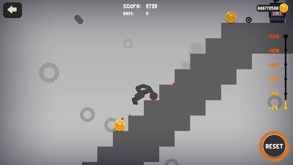 火柴人破坏的操作十分简单,很容易上手。进入关卡后,你还能临时解锁各种不同的道具,借助这些道具能让你的火柴人从高处坠落,受到的伤害越多,获得的金币也就越多哦。
