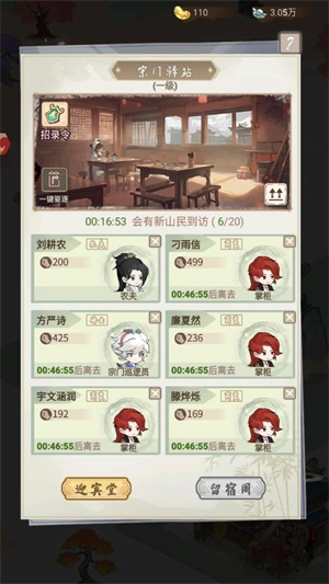 4、点击对应的建筑来分配弟子执行任务,完成任务后可获取银两与材料。