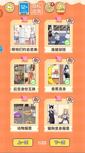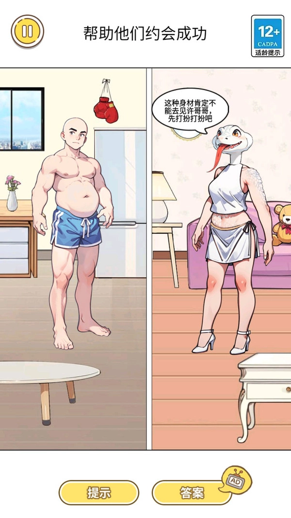 《变身来约会》是一款能带来愉悦心情的休闲装扮游戏,它巧妙融合了装扮的乐趣与约会模拟元素,为玩家打造出全新的轻松体验。在游戏里,你可以充分发挥创意,为不同角色挑选服装和配饰,让他们在约会场景中展现独特魅力。游戏玩法简单直观,没有复杂操作和压力,每位玩家都能轻松上手,尽情享受装扮的乐趣。关卡设计还融入了益智元素,玩家在闯关过程中也能收获满满的成就感。