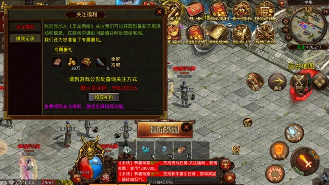 2、右上菜单福利,领取全屏拾取。