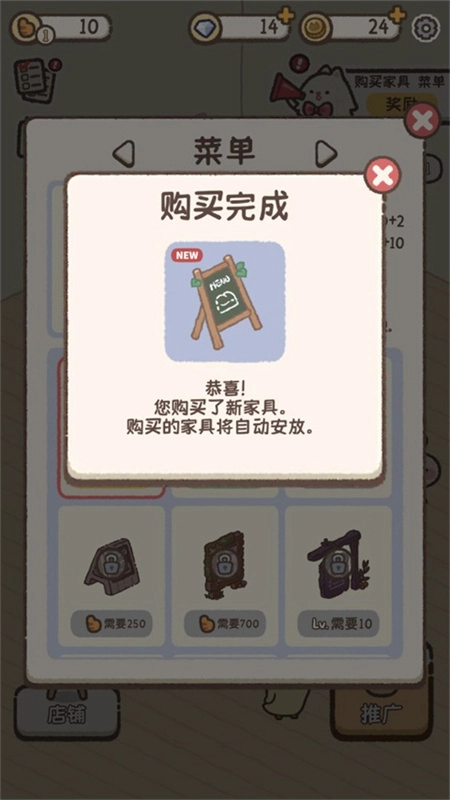 来当喵喵甜品店的老板吧!雇些可爱的员工招呼客人,吸引更多顾客呀。