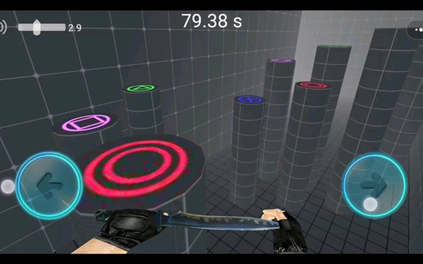 2、玩家手持枪支弹药,以第一人称视角展开一系列射击挑战,把CS的跳台设计得小巧一些,确实很有趣,也很新颖。