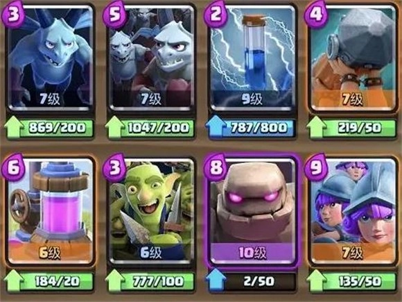 2、想要提升段位的玩家,应优先升级卡组里的核心卡,接着升级那些等级低了容易吃亏的卡,再升级等级高了能占优势的卡,最后升级一些等级影响不大的功能卡。