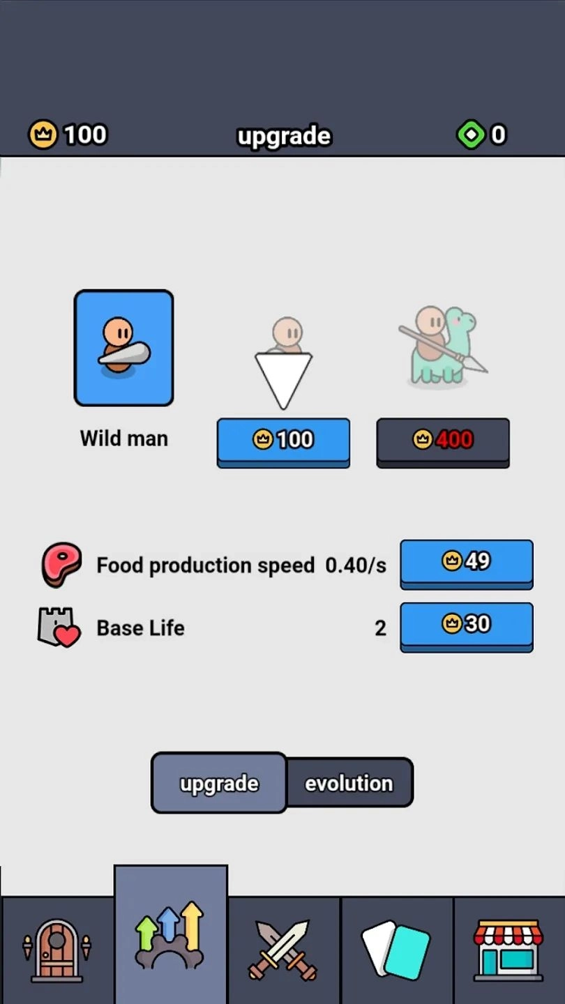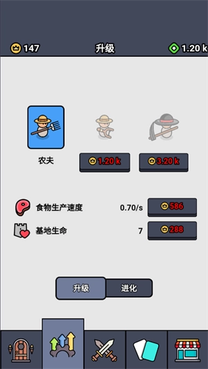 3、玩家在取得胜利后能够获取金币,利用这些金币可以对食物的产出速度以及自身的生命值进行升级