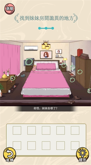 3、点击床的边缘找到妹妹,接着把猫拖到床上,等猫炸毛后再继续查看床下