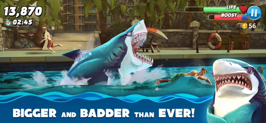 饥饿鲨世界国际服与国服有所不同,它能让玩家抢先体验到全新内容,同时还能领取到不少福利。在国际服中,玩家可以选择种类繁多的鲨鱼,搭配丰富多样的道具和装备。海洋里有大量生物等待被吞噬,玩家需要不断捕食更多海洋生物,从而成长为最强大的鲨鱼。