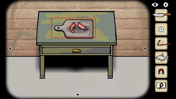 6、将虾置于砧板上切开,可获得钥匙与虾头。用虾头能钓起一具尸体,再用刀划开尸体得到苹果,即可达成“苹果”成就。