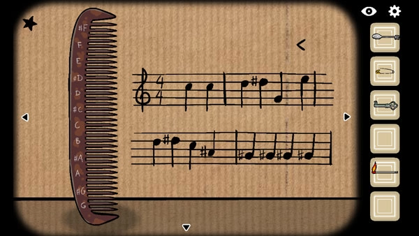 2、把拼图给它拼好,音符就会从梳子上弹出来:BBDDBB#GABDBA#GA,这样就能得到钥匙。