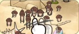 霉菌会以一定概率侵袭菇菇的生长环境,并持续繁殖。请玩家通过两次点击来消除它们。