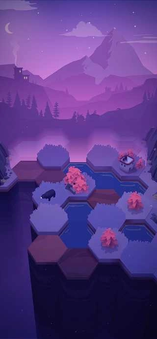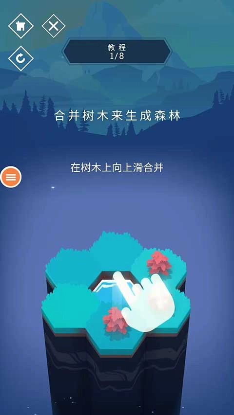 2、和山相邻的游玩方式,关键在于水与树的巧妙搭配,只要用手指向上滑动,就能启动六边形地块的生成。
