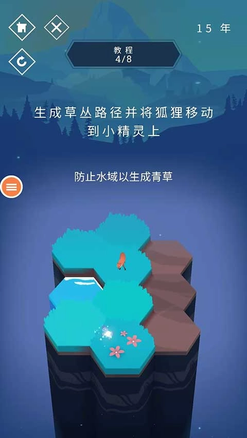 5、开辟草地小径,引导狐狸前往小精灵所在的区域,和动物们互动嬉戏。