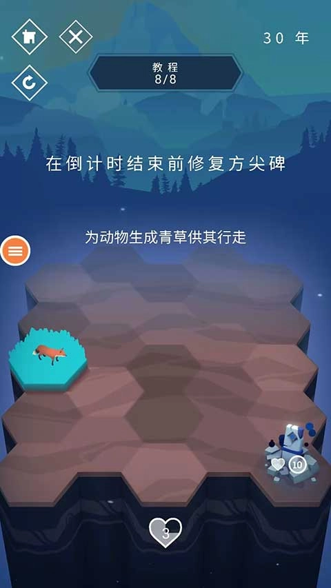 8、要记得在倒计时结束前把方尖碑修好,不然会扣除一颗爱心,一旦爱心变成零,游戏就会结束了。