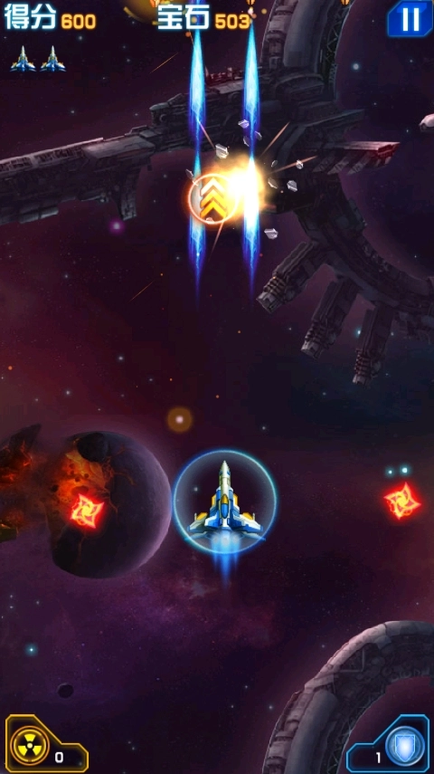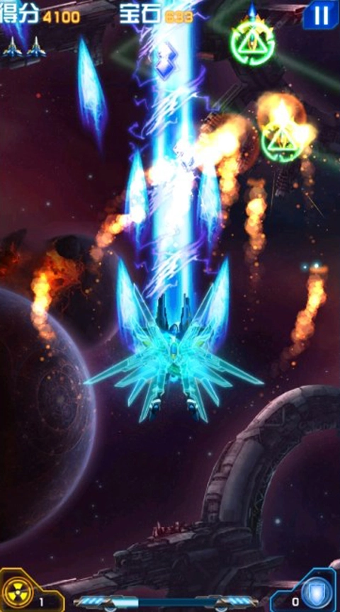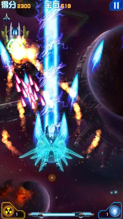 1、仅用单手就能完成全部操作,滑动屏幕就能控制战机移动并攻击目标