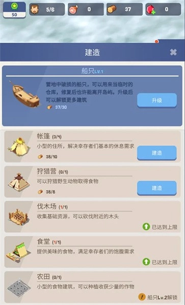 3、点击界面中间的“建造”功能,可依据当前需求建造各类物品。