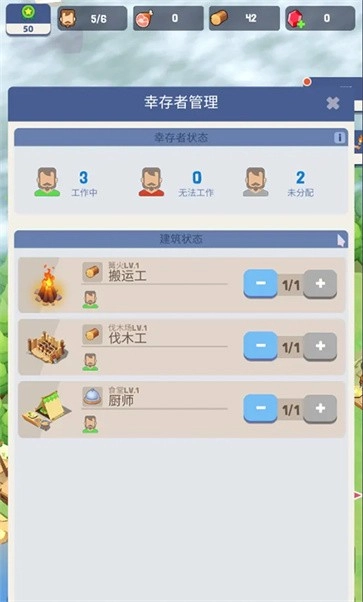 5、点击右侧的角色模式图标,就能查看当前有多少幸存者正在忙碌,以及哪些还未被分配任务。
