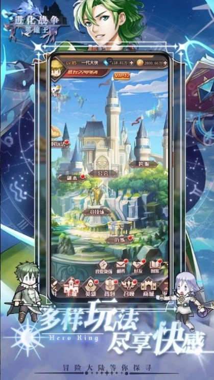 4、经历一连串的战斗与挑战后,玩家会一步步跨越所有障碍,最终蜕变为独当一面的英雄王。