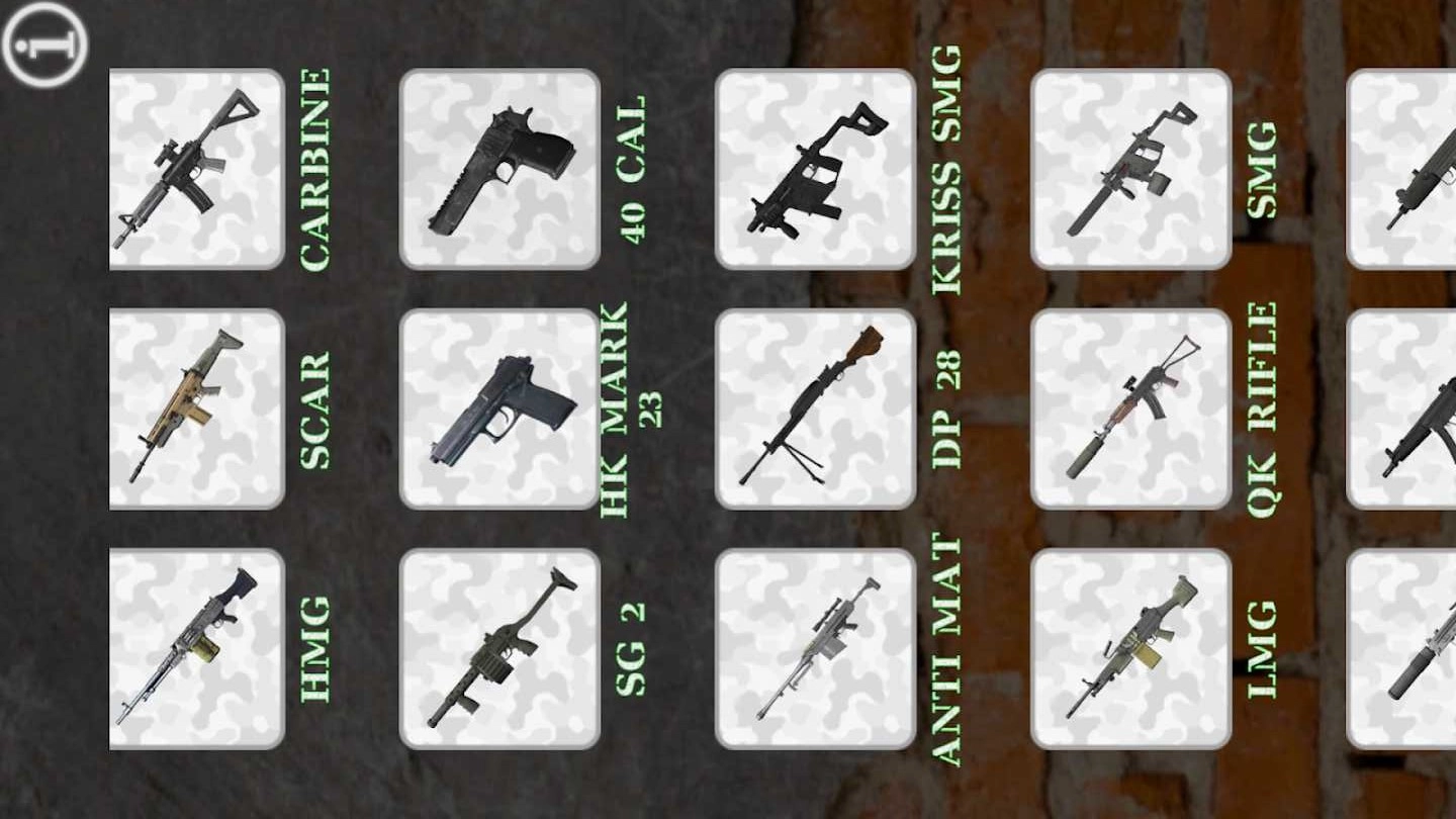 3、从近战兵器到狙击枪,种类丰富多样,玩家可以根据自己的喜好挑选兵器。