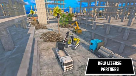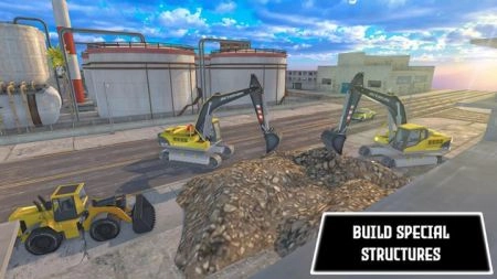 玩家在城市里盖房子,开着车辆平整空地,用来建造高楼大厦。