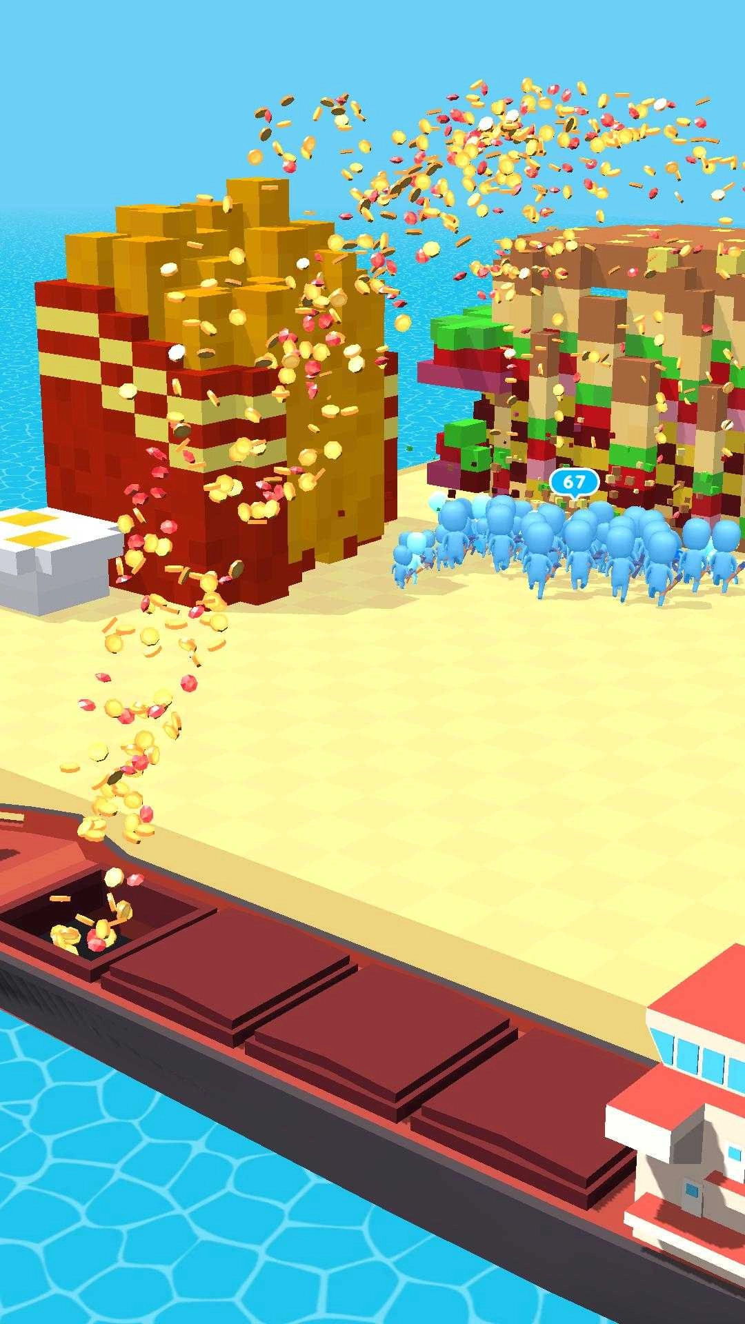 当矿工小队从色彩斑斓的矿块里开采出黄金与水晶时,不妨放松下来享受这份乐趣。给矿工们投入资源,让他们变得更强大、更高效,这样他们就能轻松拆除整座山脉和建筑。升级你的运输船容量,把更多黄金运回基地。解锁并升级各类挖矿工具装备,召集更多矿工壮大队伍,持续挖掘采集以获取更多矿石宝藏,赚取丰厚收益。开启自动挖掘和探索功能来增加闲置收入,还有机械采矿者、巨型矿工、巨魔矿工等不同类型的矿工可供选择。