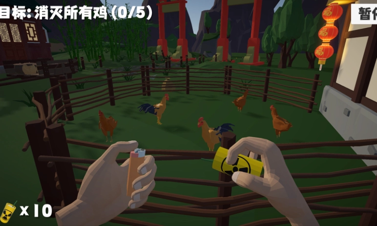 2、通过投掷鞭炮的方式完成炸飞易拉罐等不同任务。