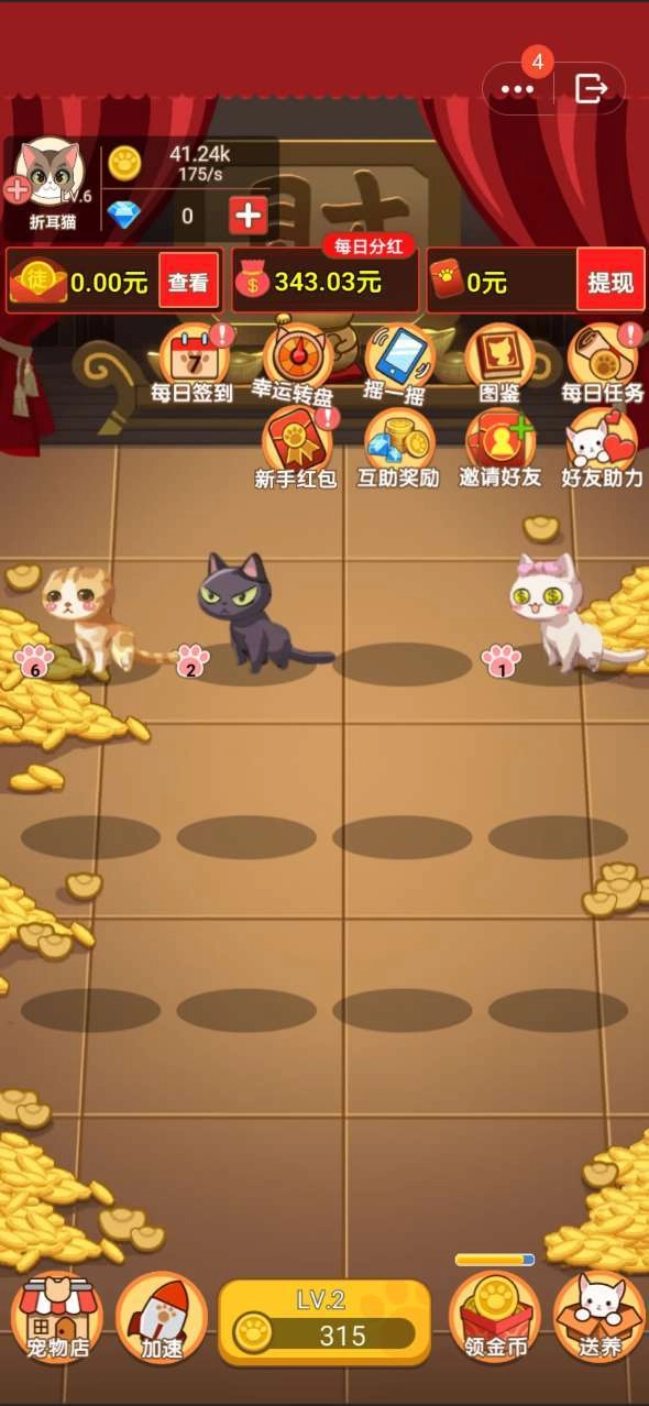 2、活泼可爱的猫咪等你解锁升级,陪你在线云互动,每天花点时间坚持签到,就能领取红包;