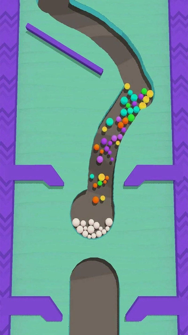 2、持续滑动手指描绘出各类通道,使这些彩色小球不断下落并进入车内。