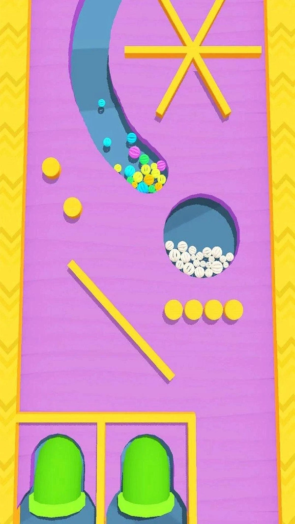 通过滑动手指为小球开辟一条通路,避开并撞击障碍物,尽可能收集更多小球。