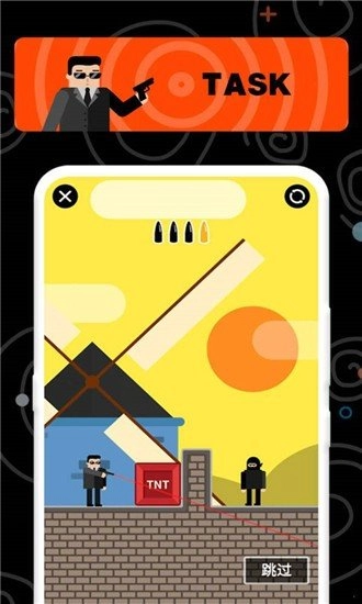 《精英特工》里真正的特工,即便不依赖武器也能出色完成任务。游戏中你的子弹数量有限,而敌人的子弹却远多于你,你得巧妙利用场景中的元素,想想办法能否把他们全部解决掉。我们为你准备了不少富有挑战性的关卡,要是感兴趣就来试试吧。