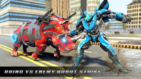 犀牛机器人是一款具有变革意义的机器人动作战斗游戏。它支持自由变换形态,让玩家能自由展开战斗。城市中巨型机器人的震撼场景令人惊叹,强劲的BGM节奏也十分出彩。游戏里有多种可自由解锁和使用的赛博机器人,还有众多任务等待玩家完成。简单的操作带来十足乐趣与更多刺激体验,完成任务还能获得丰厚奖励。