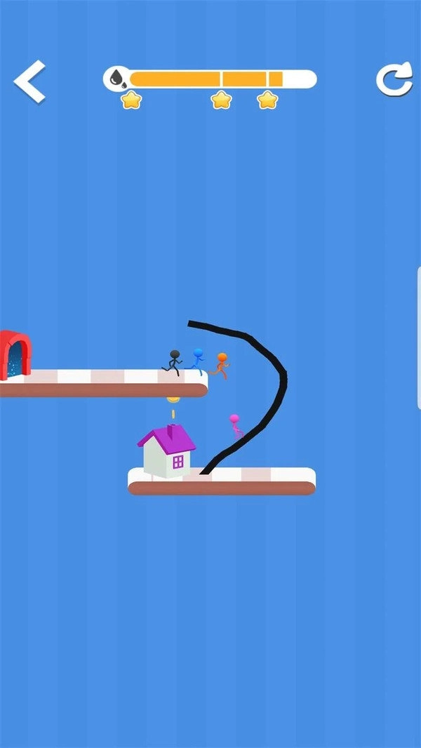 3、这是一种轻松有趣的玩法,只需在小人前方画出黑色的线路,引导他沿着线路前进,最终到达终点就可以了。