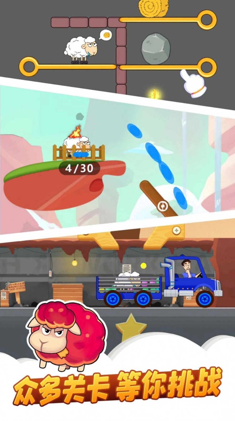 1.在这里你可以尝试全新的挑战方式,每次都能自由地开启闯关之旅,还能去解救那些可爱的小绵羊。