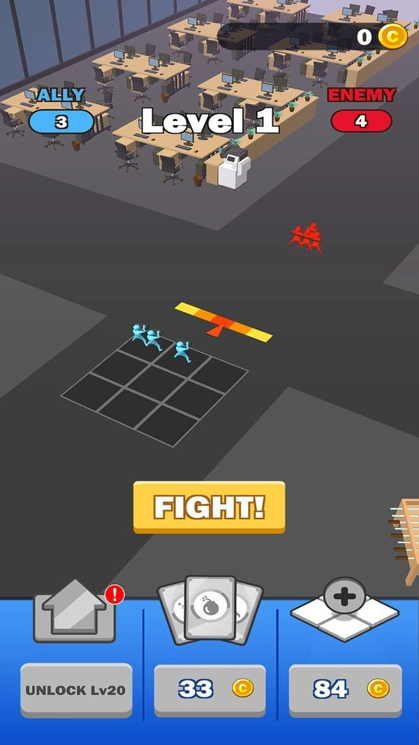 办公室大乱斗3D既然已经开打,那就不管不顾,先赢了再说;这个过程既魔性又简单,界面也十分简洁明了。