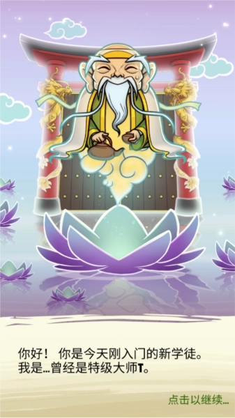 1、进入游戏后,首先会看到一段背景介绍,玩家将从这位老者手中继承一家道馆。